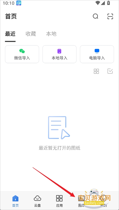 1、打开CAD迷你看图软件后,在底部功能栏中找到并点击【图库】选项。