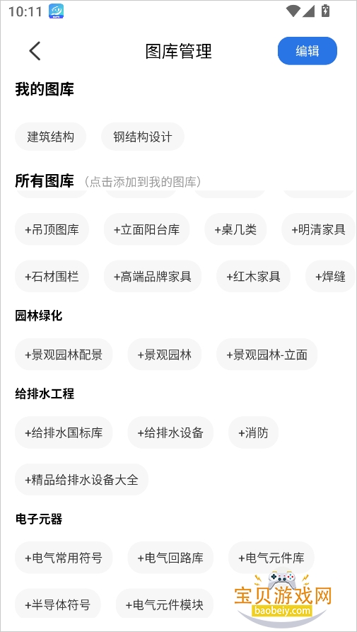 3、此时会显示全部可用的图库资源,选择你需要的图库进行添加。