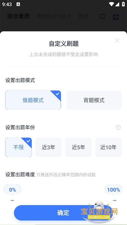 2、在自定义刷题页面设置出题模式、出题年份等。
