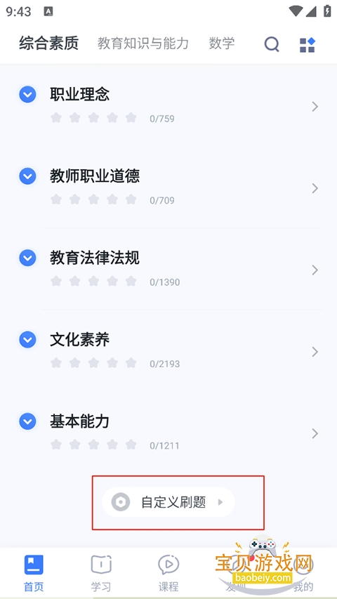 1、在首页下滑到最下方,点击自定义刷题。