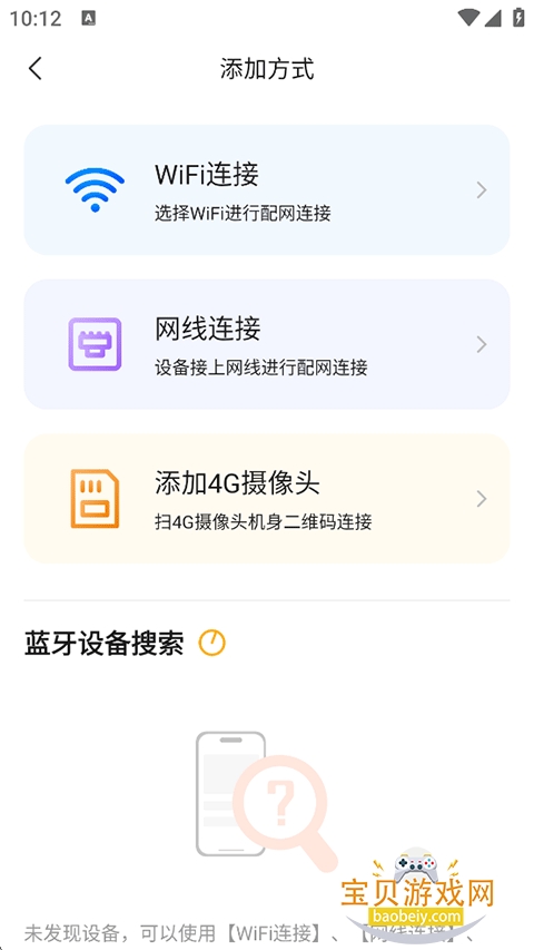 2、平台提供了WiFi连接、网线连接、添加4G摄像头以及蓝牙设备搜索4种连接方式;
