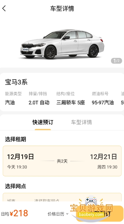 3、选择好车型后仔细查看车辆信息,确定没问题点击预定。