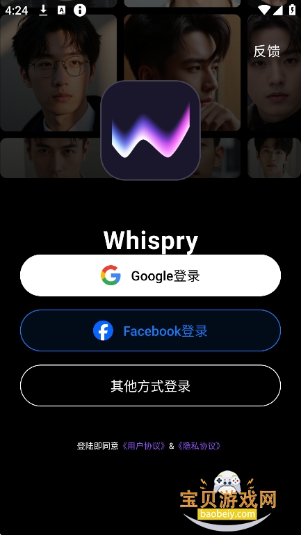 1、进入登录界面,选择登录方式,支持谷歌账号,邮箱等