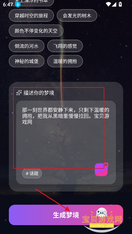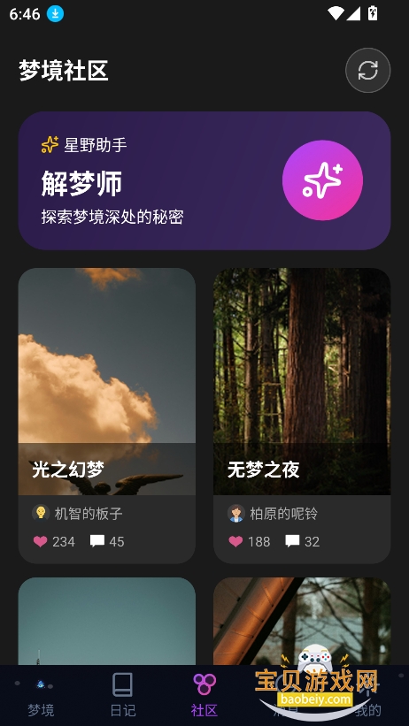 星野梦境官方版下载,是一款能帮你编织梦境、探索内心的神奇软件,以“记录梦境、AI筑梦、私密守护”为核心理念,打造专属的梦境探索与心灵疗愈空间。在这里,你可以随时记录下转瞬即逝的梦境碎片,依托先进的多模态AIGC技术,将文字描述的梦境转化为真实生动的画面,让虚幻梦境照进现实;同时,软件还支持创建专属AI智能体,陪伴你交流梦境感悟、探索潜意识,在安全无扰的环境中,解锁内心深处的自己,成为每一个追梦者的心灵栖息地。
