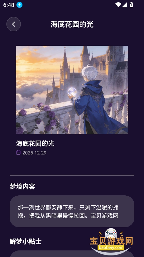 5、进入查看,就可以查看你的梦境图片,以及相关描述等