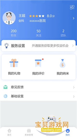 3、点击患者管理,可以查看自己名下患者的数据