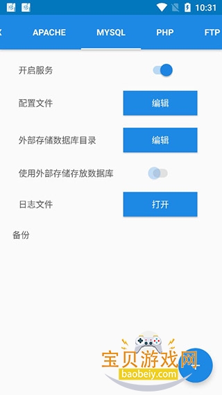 3、数据库也是很重要的,这里提供了mysql的开启和日志查看功能;