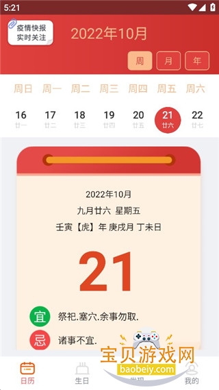 1、打开中国万年历,可以看到详细的日历情况了。