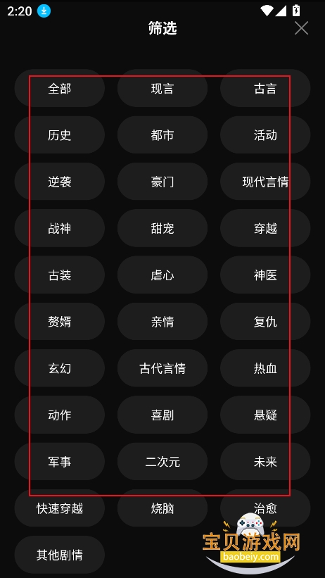 2、下方还可以筛选关键词标签,查看短剧类型题材等