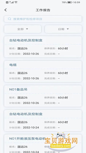 船舶维修保养模块自动生成船舶年度、月度的维修保养计划,记录每月工单的完成情况,根据设备实际运转小时数动态调整工单的到期日期,根据工单完成情况生成每月的工作报告;