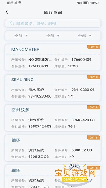 库存管理旨在帮助船岸端人员实时了解船上备件、物料、油料库存情况,当低于设定的最低库存时发起提醒,或库存有效期即将过期时发起提醒;