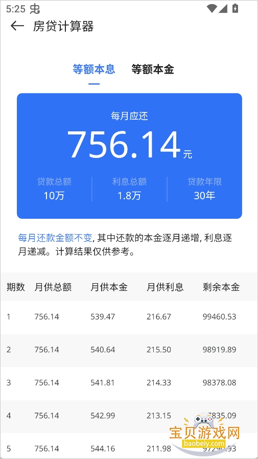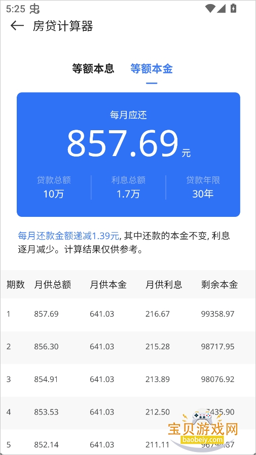 5、系统将生成两种还款方案:等额本息和等额本金,供用户参考。