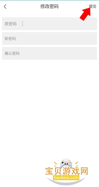 4、进入修改密码界面,输入原密码、设置新密码,点击右上角的【提交】即可