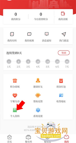 2、进入我的页面之后,然后点击【个人资料】