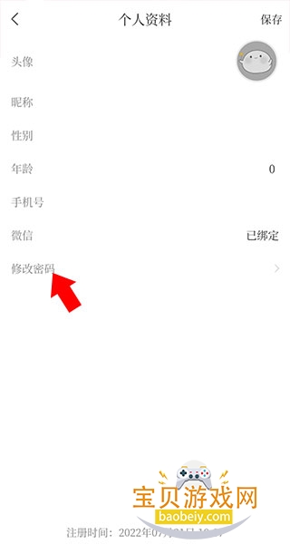 3、进入个人资料界面,再点击【修改密码】