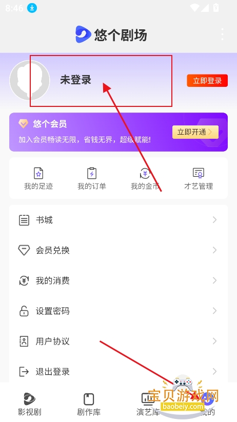 1、进入我的界面,点击“未登录”
