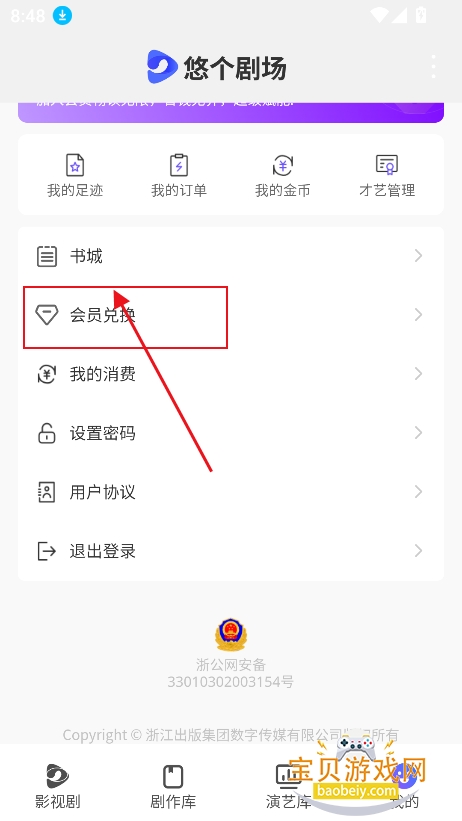 1、进入我的界面,点击会员兑换