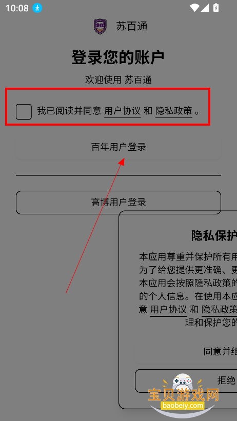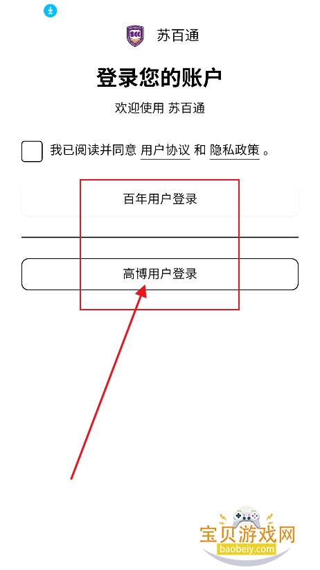 2、支持百年用户登录,或者高博用户登录,任意选择一种进行登录即可