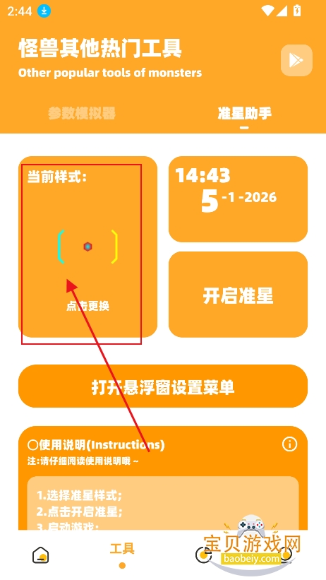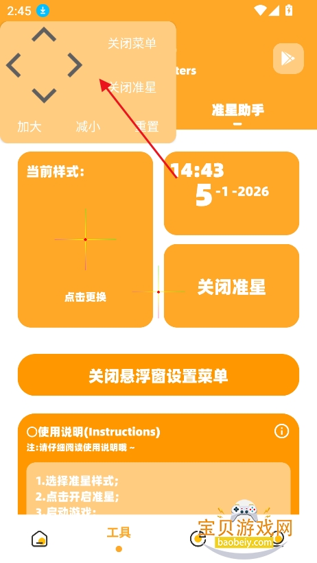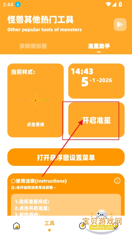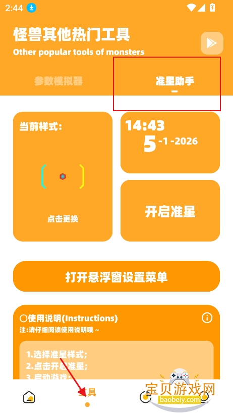 1、进入工具板块,点击准星助手