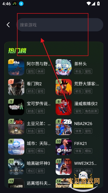 3、或者直接搜索框,输入关键词,精准检索喜欢的游戏