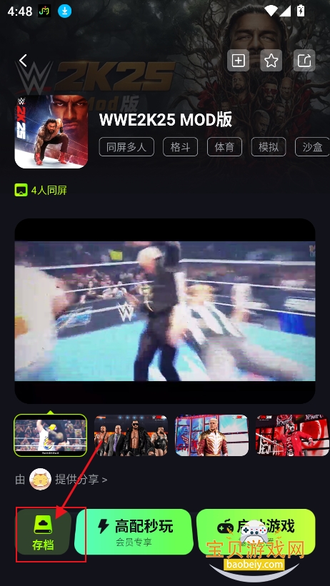1、同样进入喜欢的游戏界面,点击存档