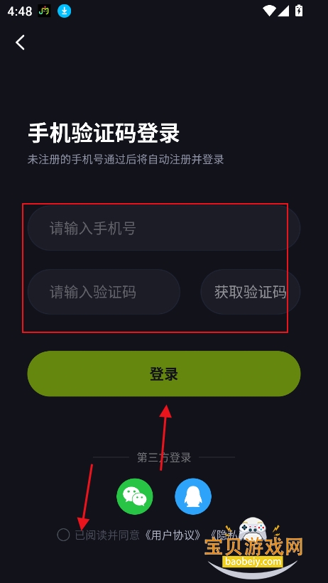 2、输入手机号,接收验证,就可以直接登录成功,新手机号自动注册为新账号