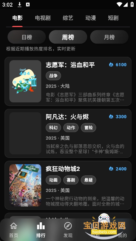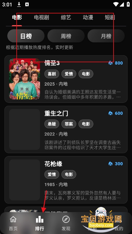 2、或者进入排行,筛选你喜欢观看的影视榜单内容,方便大家作为观看数据参考