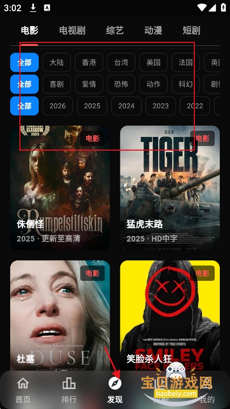 4、进入发现板块,还可以筛选更详细的影视标签,更精准筛选影视内容