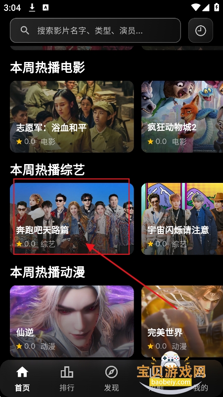1、进入首页,可以筛选近期热播综艺,电视剧,电影等