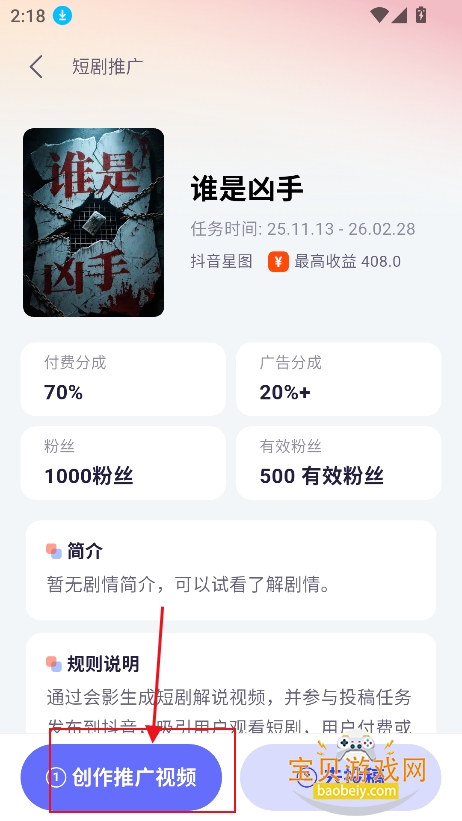4、根据搜索结果,进入短剧界面,点击创作推广视频