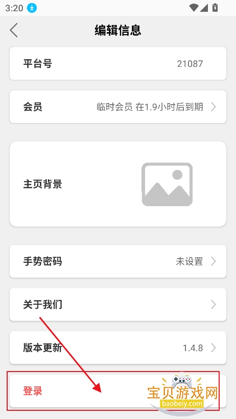 2、进入设置界面,点击最下方“登录”