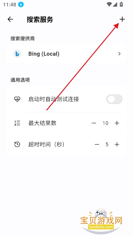 2、在搜索引擎界面,点击右上角+号