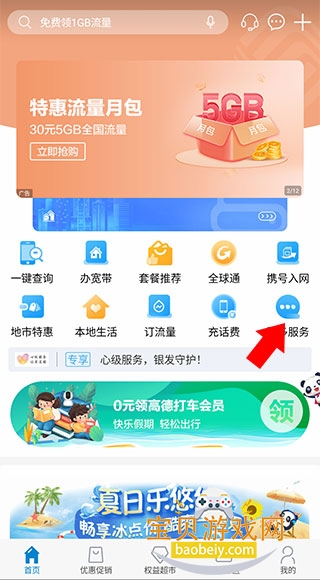 1、首页交互优化:充话费、充流量、办套餐便捷引导,基础服务一键直达。