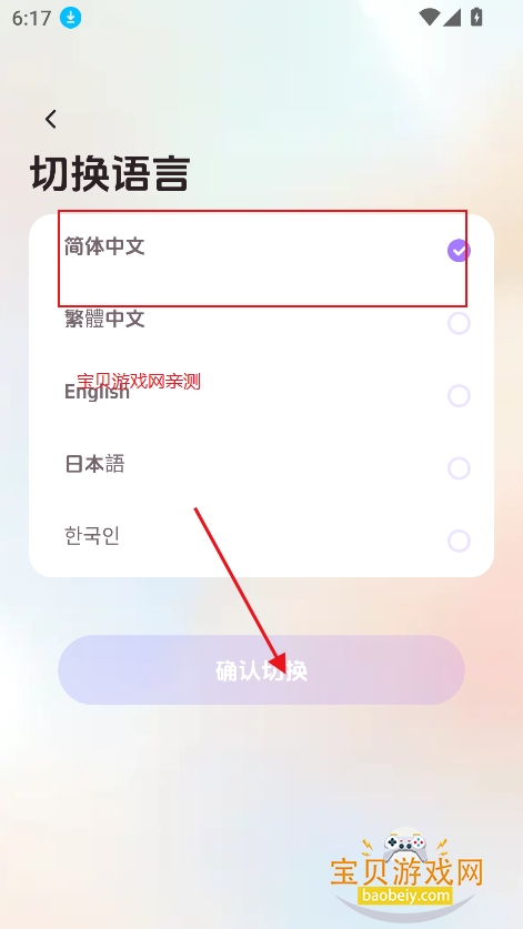 3、进入语言界面,勾选需要的语言,点击确认切换