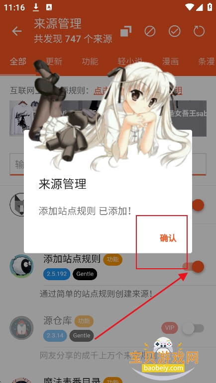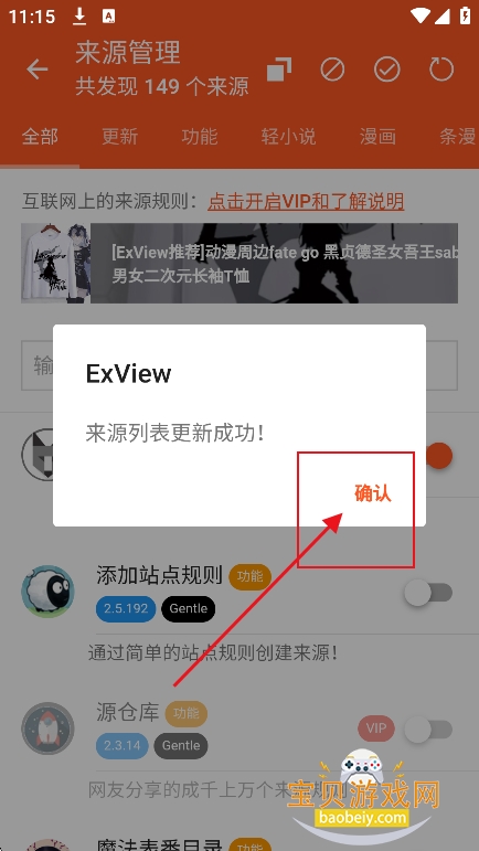 2、来源列表更新成功,点击确认
