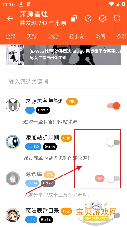 3、根据全部列表,筛选需要的漫画小说源