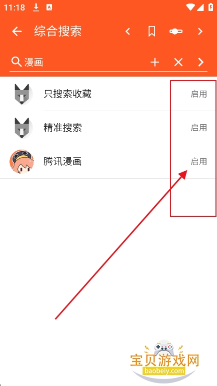 2、进入搜索界面,启用精准搜索,在搜索框输入关键词,或者漫画名等