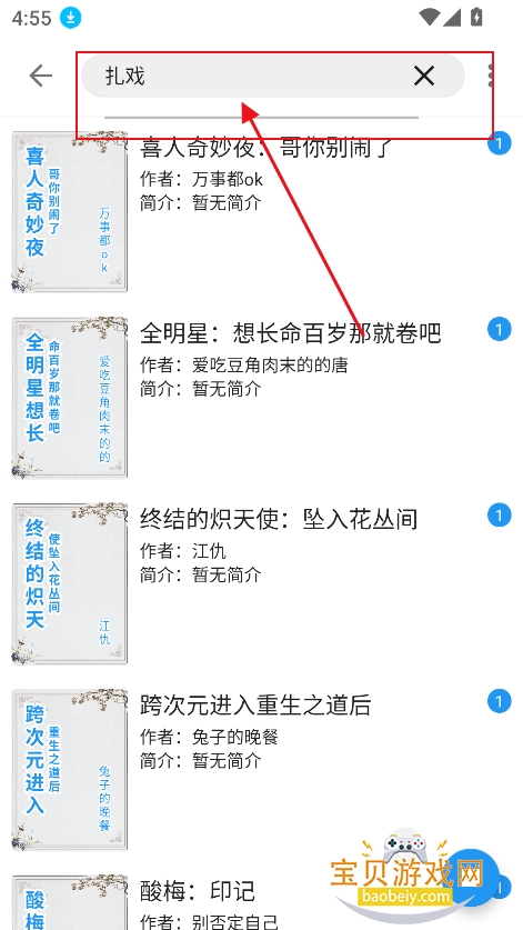 1、进入搜索界面,在搜索框输入小说名,或者作者名,精准检索