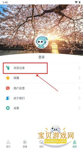 2、点击浏览记录;