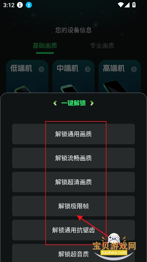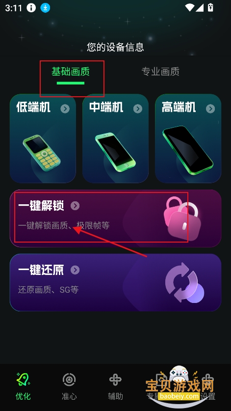 2、进入首页,提供【基础画质】【专业画质】可以任意选择