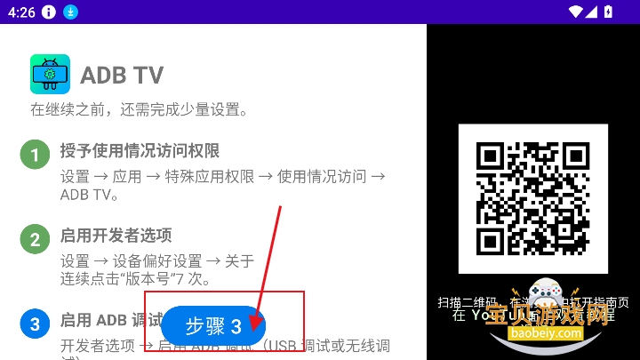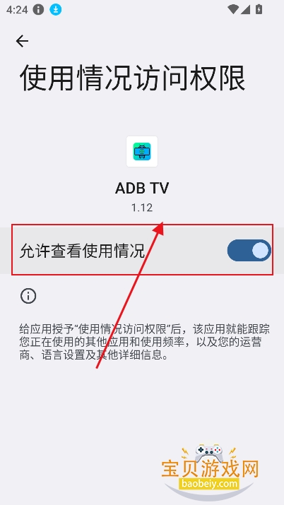 1、进入首页,授予使用情况访问权限设置→应用→特殊应用权限→使用情况访问→ADBTV。