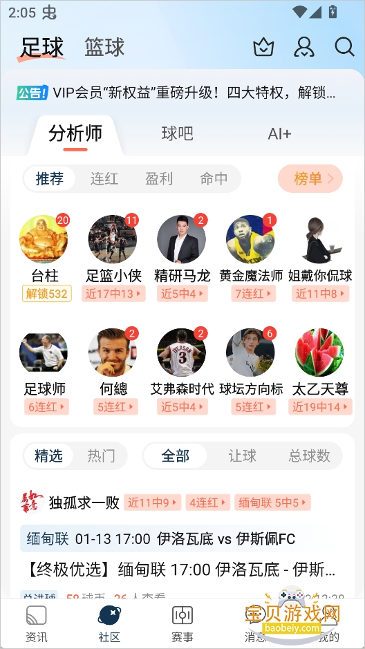 关注赛事/资讯,比分更新及时推送,达人资讯数据随时推送