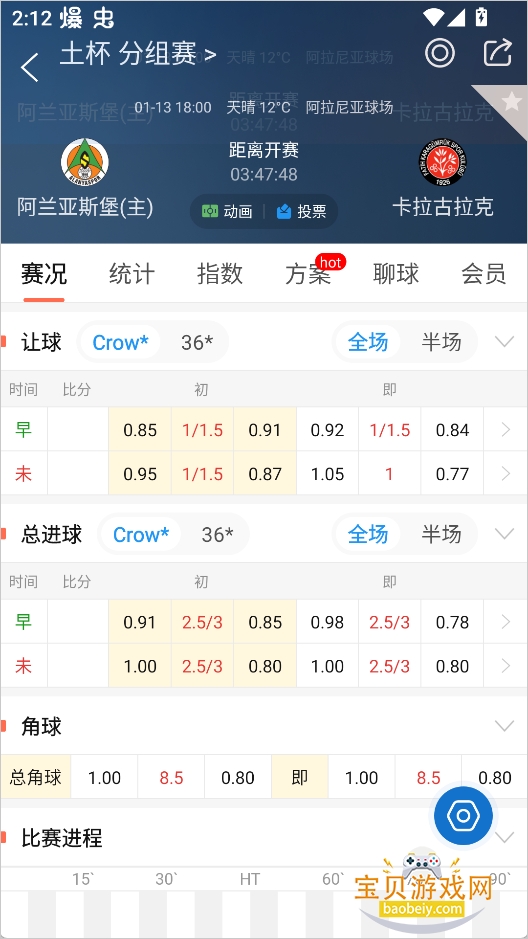 3、进入比赛详情页后,切换至【赛况】栏目,即可实时查看比赛进展。