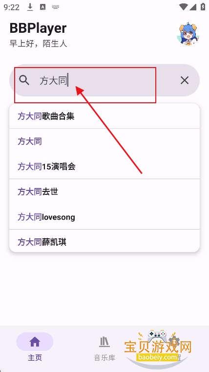 2、例如搜索歌手名【方大同】点击搜索