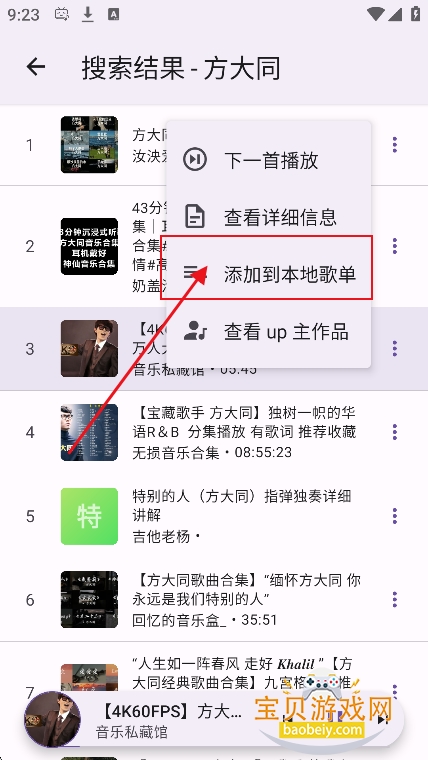 5、对于喜欢的歌曲,可以点击【添加到本地歌单】,就可以收藏进入我的歌单了