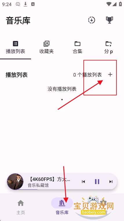 1、进入【音乐库】点击右上角+号