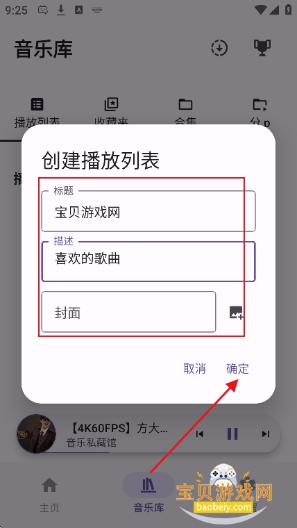 2、输入歌单名,描述,以及封面等,点击确定
