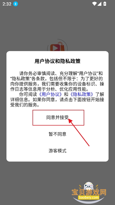 1、在宝贝游戏网下载安装微视生活短剧安卓版,点击【同意并接受】进入