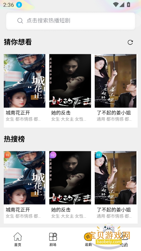4.精准题材分类与检索:按题材、热度、更新时间等维度对短剧进行清晰分类,支持关键词检索功能,用户可快速找到心仪题材的短剧,提升找剧效率;
