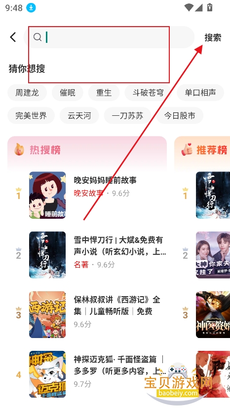 3、或者点击搜索框,输入关键词,精准检索喜欢听的有声内容